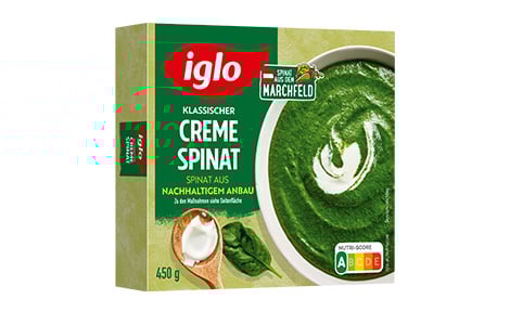 Der iglo Cremespinat kommt direkt aus dem Marchfeld, wird erntefrisch tiefgefroren und dann mit Liebe verfeinert. Unser Cremespinat vereint die gesunden Nährstoffe des Spinats mit der beliebten Cremigkeit von iglo.