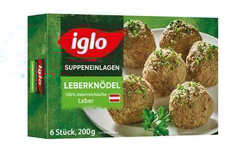 iglo bereitet die pikanten Knödel nach typischen Rezepten zu - mit bevorzugt Österreichischen Zutaten. Und zu einer wärmenden Suppe gehören Suppeneinlagen wie die Leberknödel dazu - wie selbstgemacht aber schonend tiefgefroren.