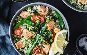 Mediterrane Lachs One Pot Bowl mit Reis