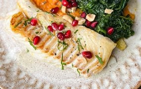 Kabeljaufilet mit Süßkartoffelpüree und Spinat