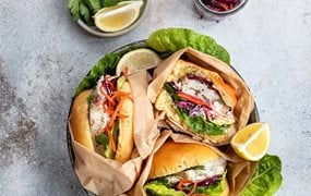 Polardorsch-Burger mit Coleslaw und Zitronenremoulade