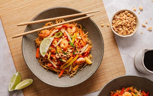 Pad Thai mit Gemüse und Garnelen