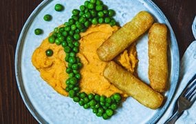 Backfisch-Stäbchen mit Erbsenreis