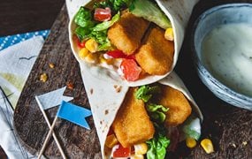 Fischstäbchen Wraps mit Ananas-Mais-Salsa