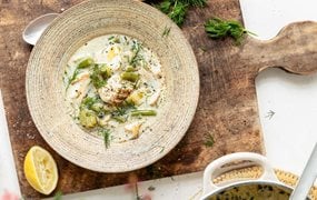 Fischsuppe mit Kabeljau, Kartoffeln und Fisolen