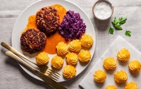 - Währenddessen das Rotkraut und die Pommes Duchesse nach Packungsanleitung zubereiten.