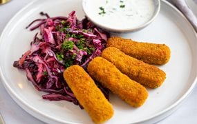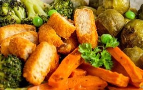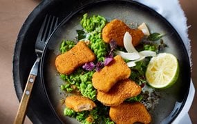 Vegane Nuggets mit Kokos-Erbsen-Püree