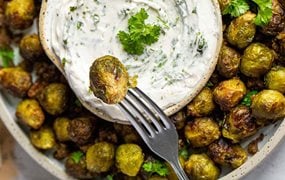 Green Cuisine Faschiertes mit Kohlsprossen und Feta-Dip