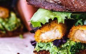 "Fischstäbchen"-Sandwich mit Broccolipesto