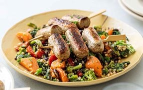 Vegane Bratwürstel mit Broccoli-Buchweizen