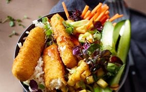 Schnelle „Fischstäbchen“-Teriyaki-Bowl
