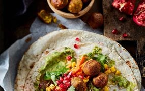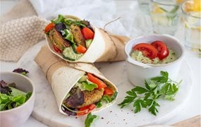 Vollkorn-Tortilla-Wrap mit Falafel und Avocado-Sesamcreme